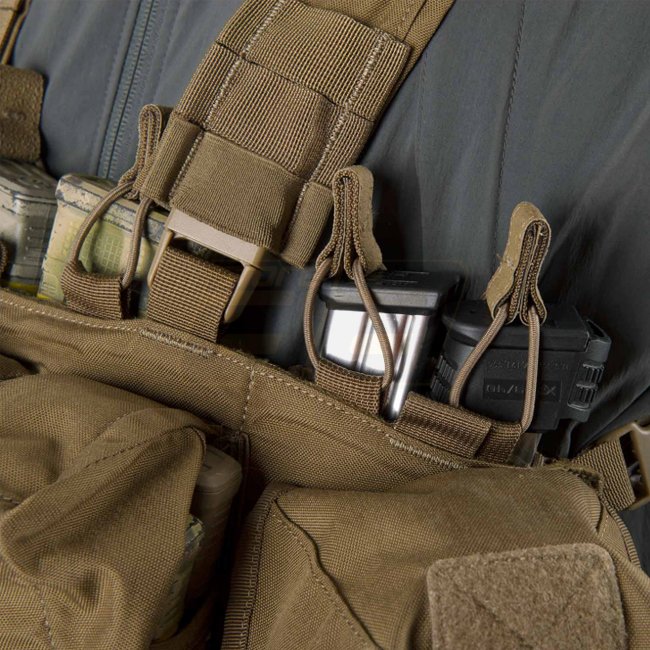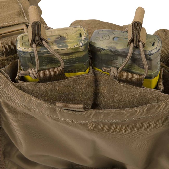 Der Guardian Chest Rig ist eine universelle Plattform zur Aufnahme von Munition und persönlicher Ausrüstung. Kompatibel um zusammen mit einem Rucksack und einem Gürtelsatz. Je nach Größe der Magazine kann die Höhe der feststehenden pouch flaps angepasst werden, auch austauschbare Magazineinsätze können entsprechend umgestellt werden.