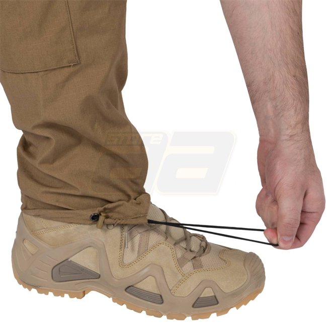 Die Hose hat einen lockeren, profilierten Schnitt. Der Gürtel ist mit Klettband befestigt, was eine zusätzliche Feineinstellung ermöglicht. Breite Gürtelschlaufen nehmen Gürtel mit einer Breite von bis zu 45mm auf, auch wenn Holster- oder Magazintaschen installiert sind. Für zusätzliche Bewegungsfreiheit finden sich Einschübe aus elastischem VersaStretch Material auf der Rückseite sowie im Schrittbereich. Klassische Fronttaschen mit Verstärkungen an den Kanten vermeiden eine Beschädigung durch Messerklammern. Zusätzliche Gesäßtaschen mit verstärkten Kanten passen fassen auch größere Gegenstände wie Magazine. An den Oberschenkeln befinden sich große, geräumige Cargotaschen mit Knöpfen. An den Unterschenkeln fassen kleinere geschlossene Taschen mit Klettverschluss wichtige Ausrüstung wie Feldverbände oder ein Tourniquet.