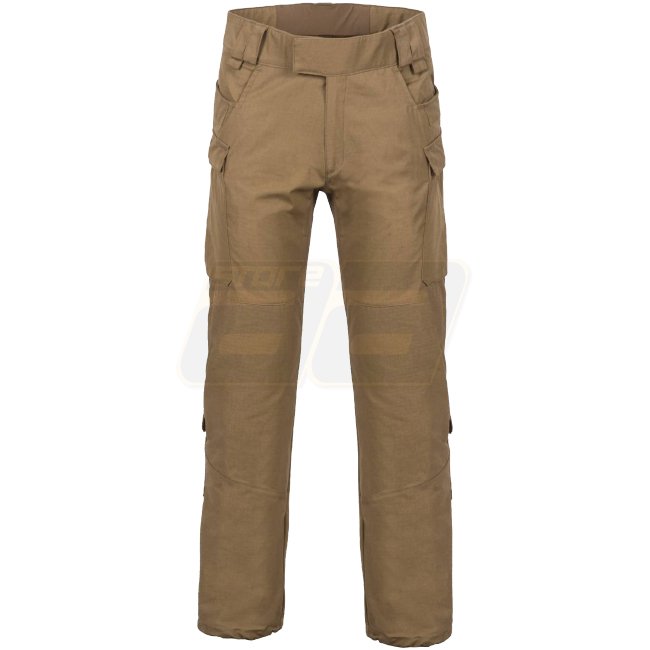 Die Hose hat einen lockeren, profilierten Schnitt. Der Gürtel ist mit Klettband befestigt, was eine zusätzliche Feineinstellung ermöglicht. Breite Gürtelschlaufen nehmen Gürtel mit einer Breite von bis zu 45mm auf, auch wenn Holster- oder Magazintaschen installiert sind. Für zusätzliche Bewegungsfreiheit finden sich Einschübe aus elastischem VersaStretch Material auf der Rückseite sowie im Schrittbereich. Klassische Fronttaschen mit Verstärkungen an den Kanten vermeiden eine Beschädigung durch Messerklammern. Zusätzliche Gesäßtaschen mit verstärkten Kanten passen fassen auch größere Gegenstände wie Magazine. An den Oberschenkeln befinden sich große, geräumige Cargotaschen mit Knöpfen. An den Unterschenkeln fassen kleinere geschlossene Taschen mit Klettverschluss wichtige Ausrüstung wie Feldverbände oder ein Tourniquet.