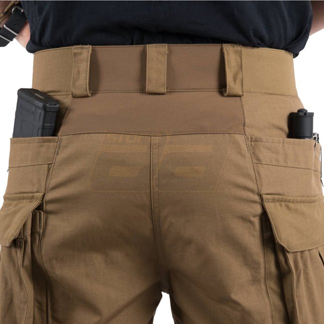 Die Hose hat einen lockeren, profilierten Schnitt. Der Gürtel ist mit Klettband befestigt, was eine zusätzliche Feineinstellung ermöglicht. Breite Gürtelschlaufen nehmen Gürtel mit einer Breite von bis zu 45mm auf, auch wenn Holster- oder Magazintaschen installiert sind. Für zusätzliche Bewegungsfreiheit finden sich Einschübe aus elastischem VersaStretch Material auf der Rückseite sowie im Schrittbereich. Klassische Fronttaschen mit Verstärkungen an den Kanten vermeiden eine Beschädigung durch Messerklammern. Zusätzliche Gesäßtaschen mit verstärkten Kanten passen fassen auch größere Gegenstände wie Magazine. An den Oberschenkeln befinden sich große, geräumige Cargotaschen mit Knöpfen. An den Unterschenkeln fassen kleinere geschlossene Taschen mit Klettverschluss wichtige Ausrüstung wie Feldverbände oder ein Tourniquet.