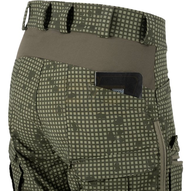 In wichtigen Bereichen (Taille, Schritt und Kniekehlen) wurden Einsätze aus Versastrech-Material verwendet. Es trocknet schnell und ist hoch atmungsaktiv. Der Kniebereich ist mit 500D Cordura-Gewebe mit Schlitzen für Schutzeinsätze verstärkt. Dank zusätzlicher Kordeln, die sich unter dem Knie und am unteren Beinende befinden, lässt sich die Hose leicht an das Bein anpassen.