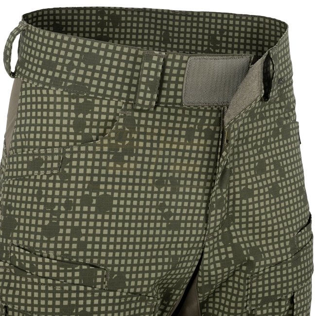 In wichtigen Bereichen (Taille, Schritt und Kniekehlen) wurden Einsätze aus Versastrech-Material verwendet. Es trocknet schnell und ist hoch atmungsaktiv. Der Kniebereich ist mit 500D Cordura-Gewebe mit Schlitzen für Schutzeinsätze verstärkt. Dank zusätzlicher Kordeln, die sich unter dem Knie und am unteren Beinende befinden, lässt sich die Hose leicht an das Bein anpassen.