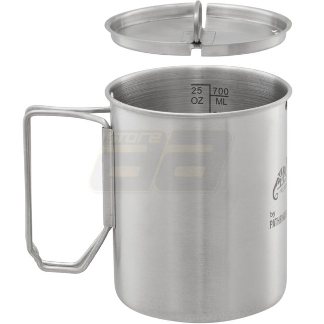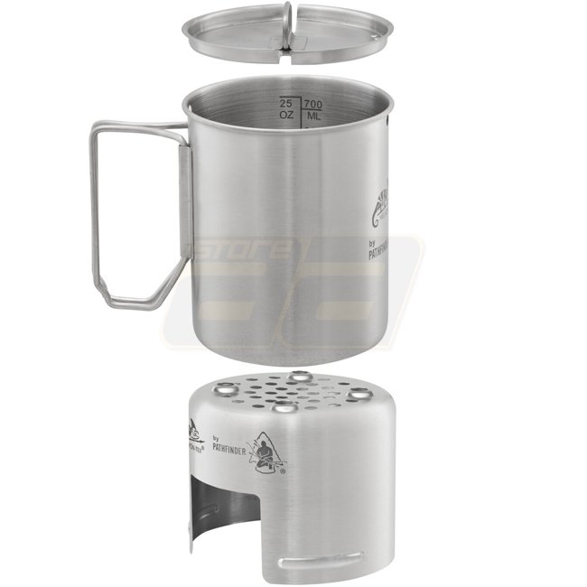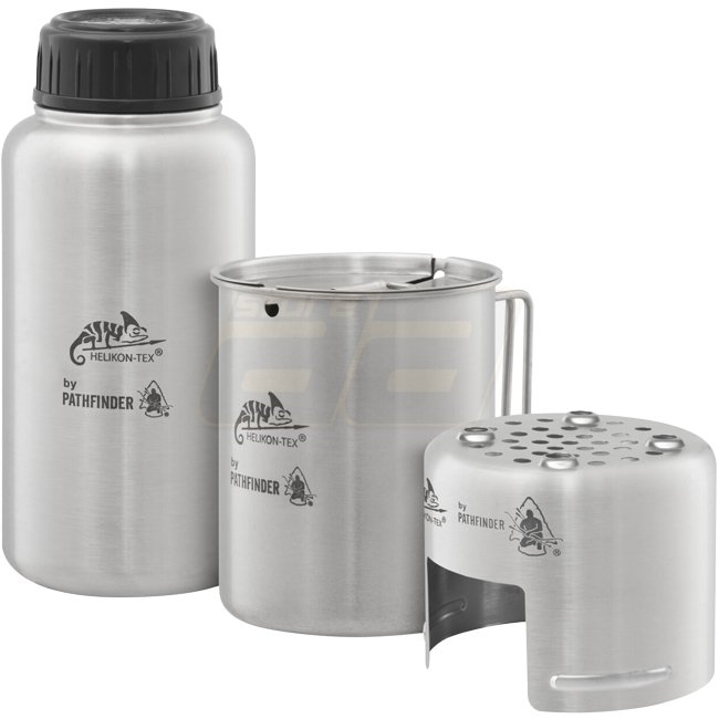 Das PATHFINDER Bottle Cooking Set ist ein einfaches Camping-Set, mit dem Sie während der Reise Wasser kochen oder eine Mahlzeit zubereiten können. Die Elemente aus strapazierfähigem Edelstahl garantieren, dass die Ausrüstung beim Transport in einem Outdoor-Rucksack oder einer Bushcraft-Tasche nicht beschädigt wird. Die Silikondichtung in der Flasche verhindert das Auslaufen von Flüssigkeiten und das breite Mundstück erleichtert das Entnehmen von Wasser auch aus sehr flachen Tanks und Bächen.
