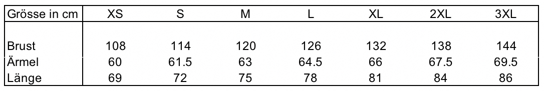 - Unter den Armen befindet sich links und rechts jeweils eine Reissverschlussöffnung um bei körperlichen Aktivitäten einen Wärmestau zu verhindern
