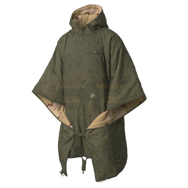 Der Helikon-Tex Reversible Swagman Roll Poncho ist ein vielseitiger und leichter Poncho, der auf verschiedene Arten verwendet werden kann. Er verfügt über eine warme Kapuze, ein doppelseitiges Design, eine integrierte Transporttasche, Kompatibilität mit U