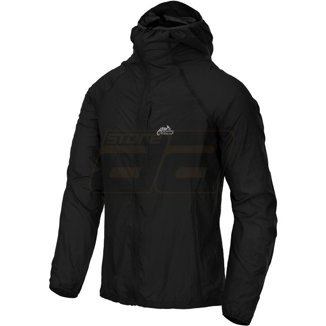Helikon-Tex Tramontane Windjacke - Schwarz - S: Ultraleichte winddichte Schicht, selbstverpackte Tasche, verstellbare Kapuze, 120g, 100% Nylon.