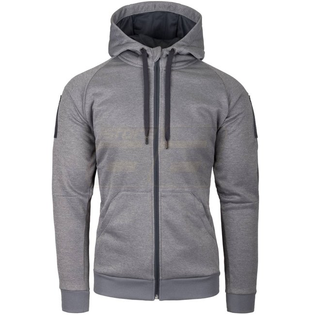 Urban Tactical Hoodie FullZip - Melange Schwarz-Grau - S ist eine leichte, vollständig zu öffnende Kapuzenjacke, perfekt für städtische Einsätze. Ausgestattet mit YKK-Reißverschluss, Schlaufenfeld zur Personalisierung, Reißverschlusstaschen, meshgefüttert