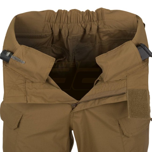 Helikon-Tex Urban Tactical Pants in Coyote-Farbe, Größe 3XL Lang. Entworfen für taktische Essentials mit einem zivilen Look. Verfügt über einen elastischen Bund, breite Gürtelschlaufen, verstärkte Taschen und Kompatibilität mit Low Profile Protective Pads