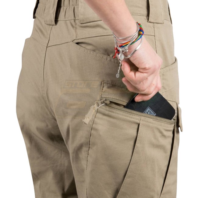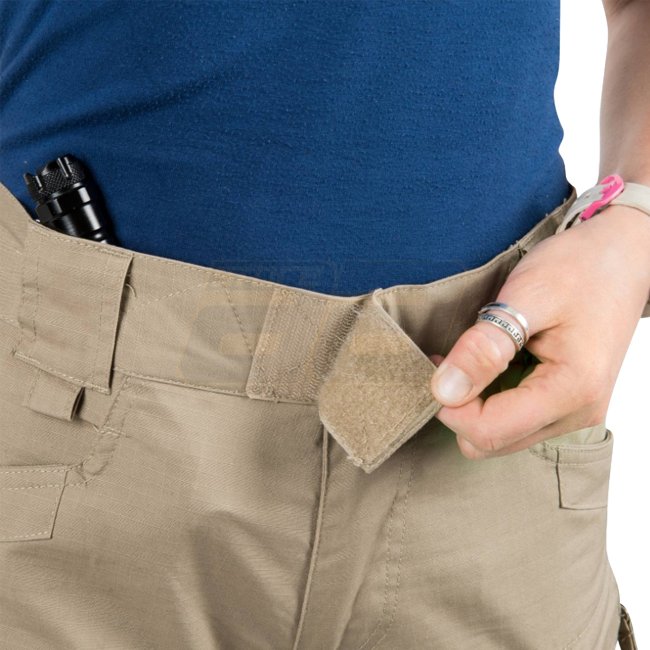 Helikon-Tex Damen UTP Urban Tactical Pants in Olivgrün, Größe 29 - 32. Anatomischer Schnitt mit zivilem Look, jedoch voll funktionsfähige Combat-Hosen. Elastischer, mit Klettverschluss geschlossener Gürtel, breite Gürtelschlaufen für taktische Gürtel. Ver