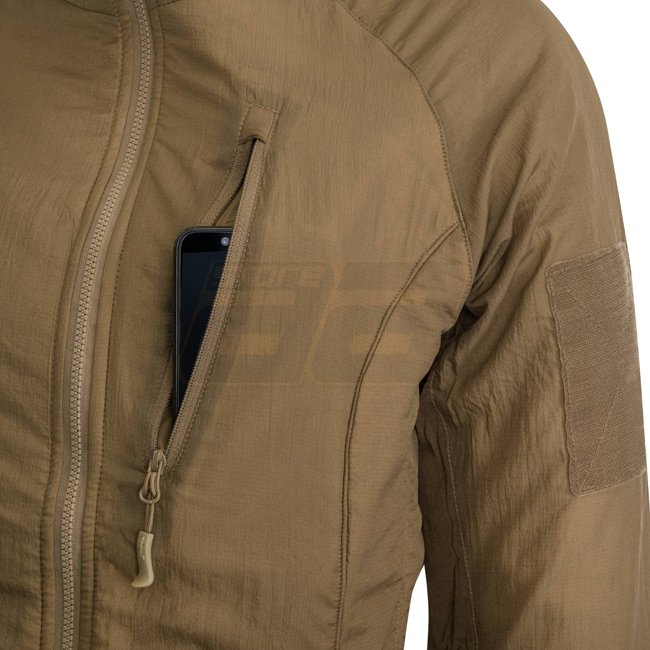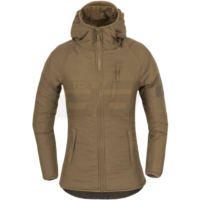 Eine leichte und isolierte Jacke mit Kapuze, die Helikon-Tex Damen Wolfhound Hoodie Jacke in Schwarz XS, verfügt über eine schützende DWR-Schicht für leichten Regenschutz. Climashield® Apex™ Isolierung sorgt für thermischen Komfort, auch wenn sie nass ist