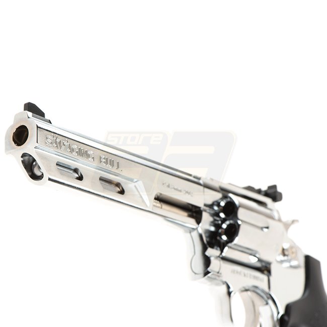 Der HFC 6 Zoll Gas Non Blow Back Revolver in Silber ist eine langlebige und leistungsstarke Airsoft-Waffe. Hergestellt aus Aluminium und faserverstärktem Polymer, bietet er eine Magazin-Kapazität von 6 (6mm) Patronen und einen Schussmodus von Semi Auto. M