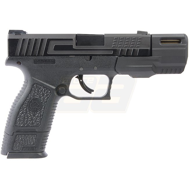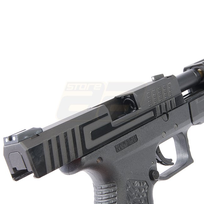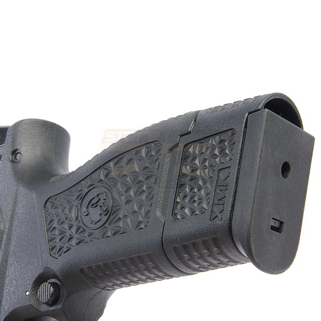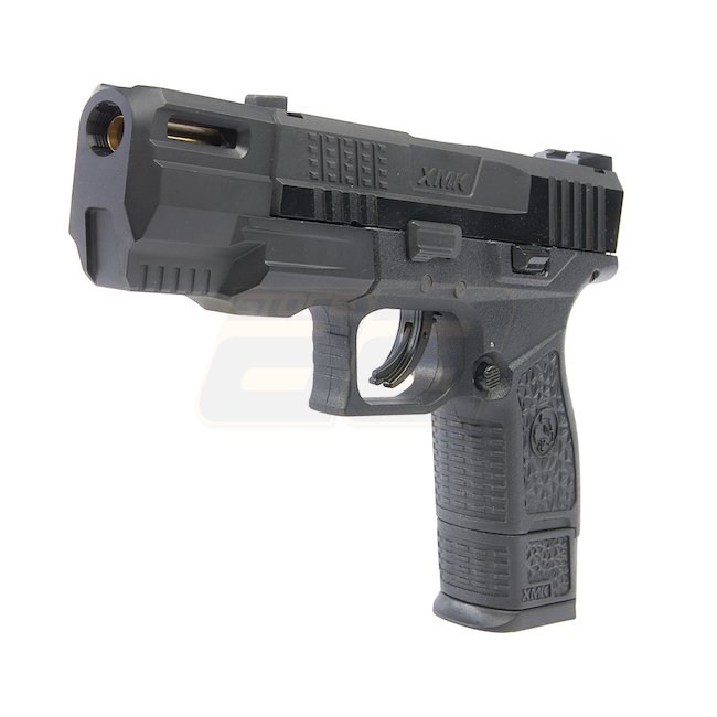Die ICS XMK Gas Blow Back Pistole in Schwarz ist eine leistungsstarke Airsoft-Waffe, die für den Semi-Auto-Shooting-Modus geeignet ist. Sie verfügt über einen Metallschlitten und einen Kunststoffgriff/-rahmen mit einstellbarem Hop-Up. Wird mit einem Magaz