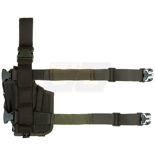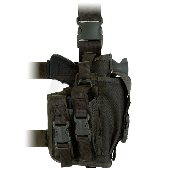 Universelle SOF-Holster, entworfen um mittlere und große Pistolen wie Glock 17, Beretta 92 oder SOCOM MK23 zu passen. Ausgestattet mit integrierten Magazintaschen, Beinplatte mit Gürtelclip, verstellbarem Riemen für die Waffensicherung. Hergestellt aus st