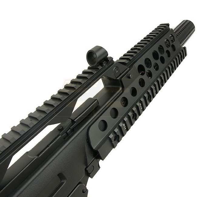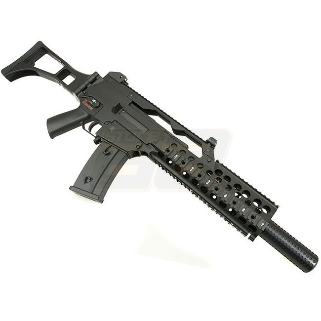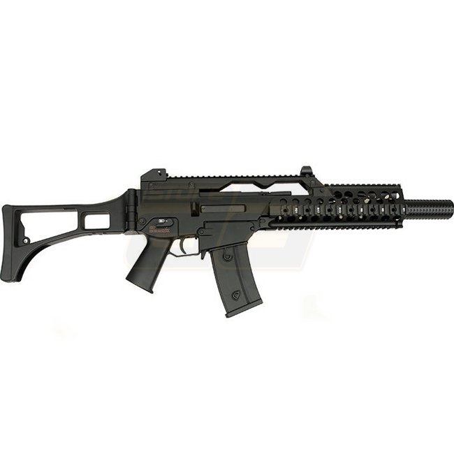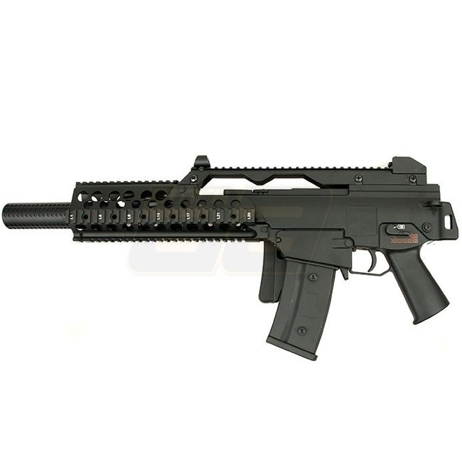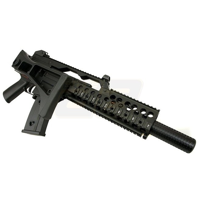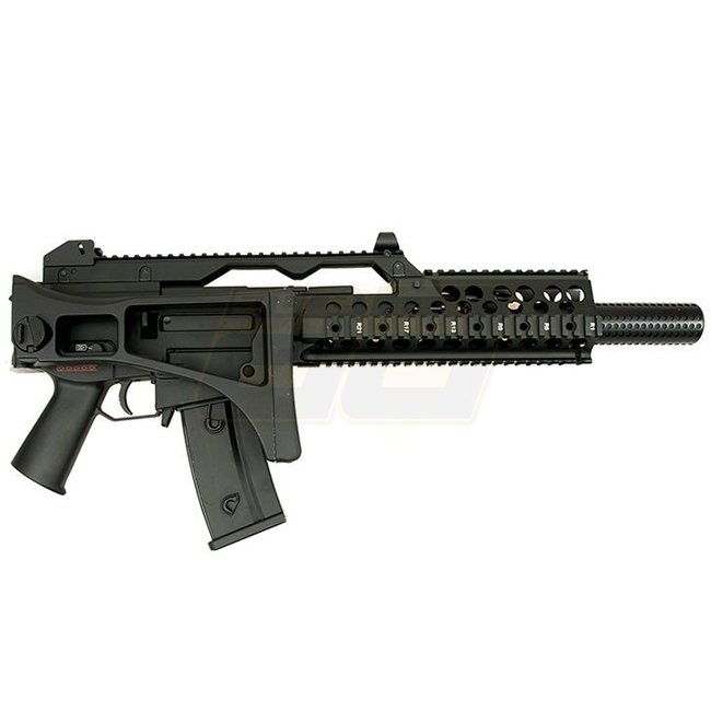 Jing Gong JG36 RAS SD AEG - Schwarz: Kompakt und leistungsstarkes AEG mit ABS-Kunststoffkonstruktion, 470-Schuss Magazin, 330-350 FPS Mündungsenergie und verstellbarem Hop-Up. Perfekt für sowohl Semi-Auto als auch Vollautomatik-Schießmodi.