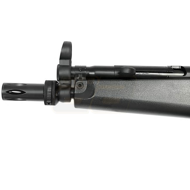 Jing Gong PM5 A5 AEG - ABS-Kunststoffgetriebe mit Long Type Motor, 200-Schuss Magazine-Kapazität, 574-724mm Länge, 1920g Gewicht. Merkmale: Geschwindigkeit von 340-360 FPS, Halbautomatik & Vollautomatik, und einstellbarer Hop Up. Enthält Gewehr, Magazin,