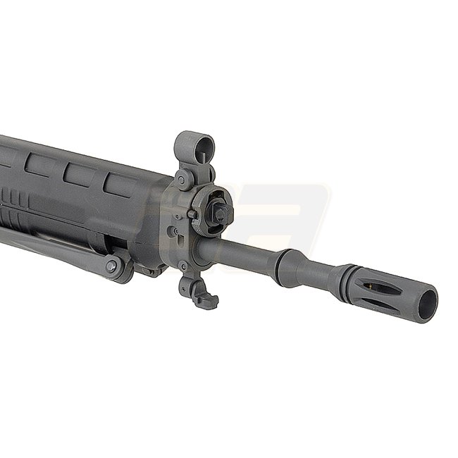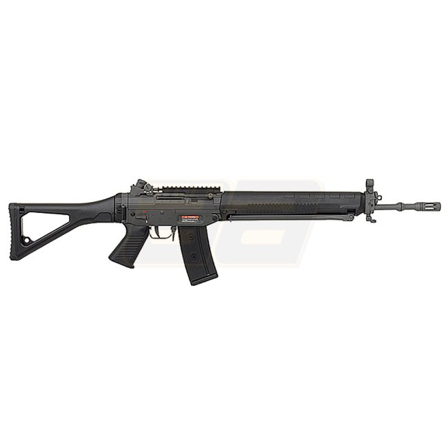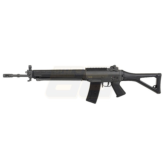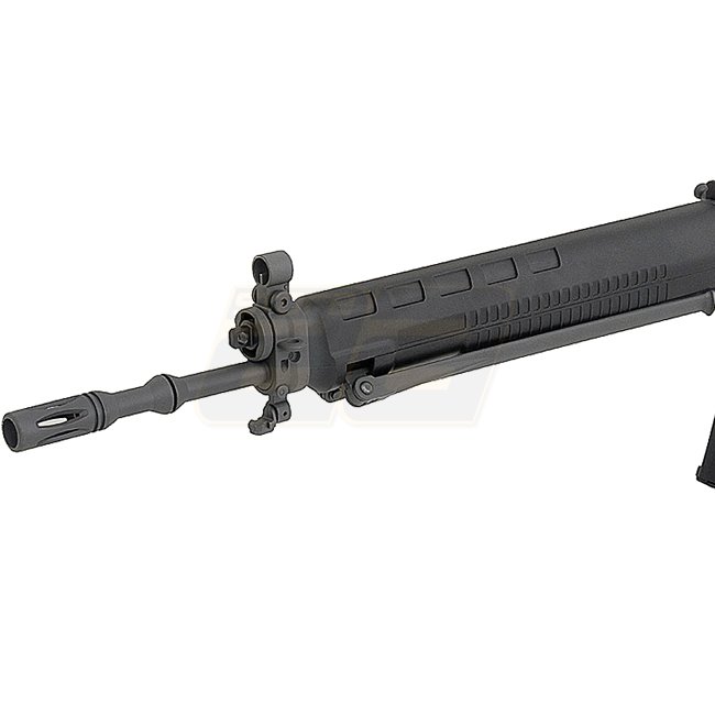 Jing Gong SG550 AEG ist ein zuverlässiges Airsoft-Gewehr mit einer robusten ABS-Kunststoffkonstruktion, halbautomatischen und vollautomatischen Feuermodi sowie einem einstellbaren Hop-Up-System. Es verfügt über ein Gearbox: Version 3, einen Kurzmotortyp,