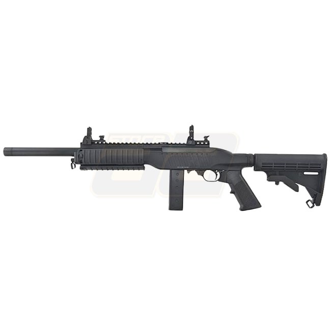 KJ Works KC-02 Gas Blow Back Gewehr - Version 2, Metallkörper, Kunststoffschienen, Schaft & Pistolengriff. Magazinkapazität 22 Schuss. Länge 782-864mm, Gewicht 2740g. Innere Lauflänge 350mm. Mündungsgeschicht 14mm, Mündungsenergie 400-420 FPS. Halbautomat