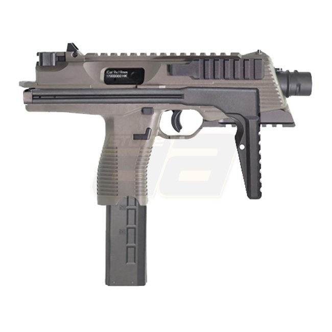 KSC TP9 A3 Gas Blow Back SMG - Ranger Grün: Faserverstärkter Polymer/Metal, 48 Schuss Magazin, 305/527mm, 1725g, 140mm Innenlauf, 330-350FPS, Halb- & Vollautomatik, 45.27-48.02m Reichweite, Einstellbares Hop Up. Im Paket enthalten sind Waffe & Magazin.