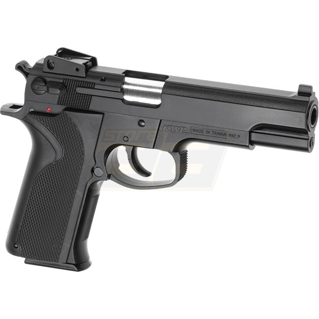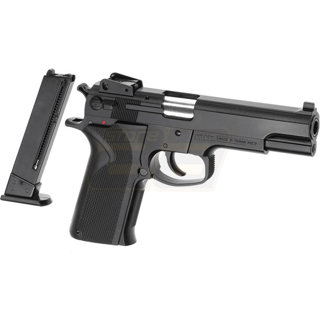 KWC M4505 Federpistole in Schwarz. Material: ABS-Kunststoff / Metall. Magazin容量: 12 (6mm). Länge: 219mm. Gewicht: 360g. Mündungsgeschwindigkeit: 220-240 FPS. Schussweite: 45,27-48,02m. Hop Up: Fest. Paket beinhaltet Waffe und Magazin.
