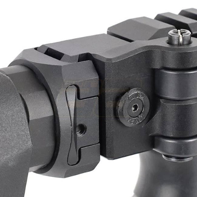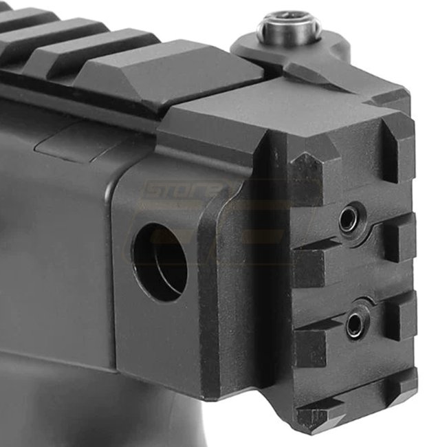 Eine schwarze Picatinny-Hintergrundstütze, die für Layalx Krytac Kriss Vector AEG entwickelt wurde und Stabilität sowie Anpassungsoptionen für Ihre Feuerwaffe bietet.