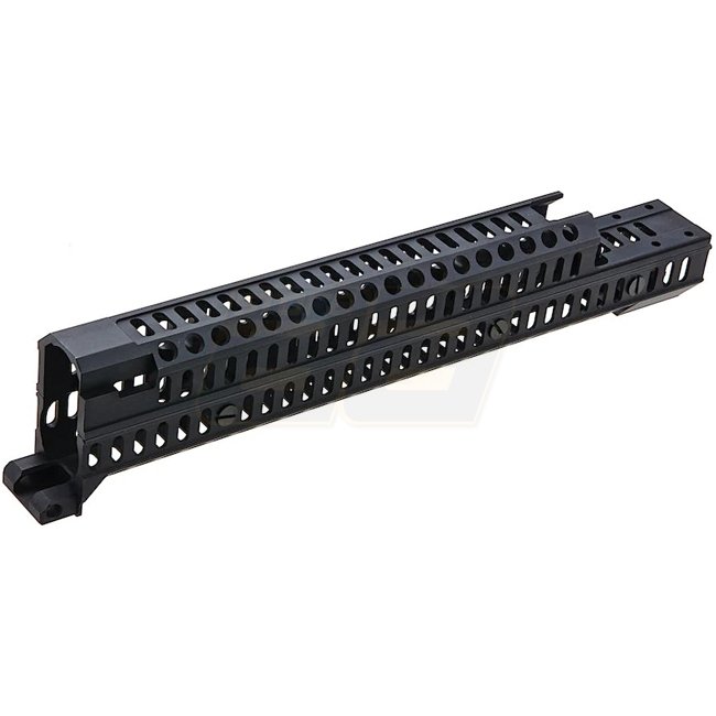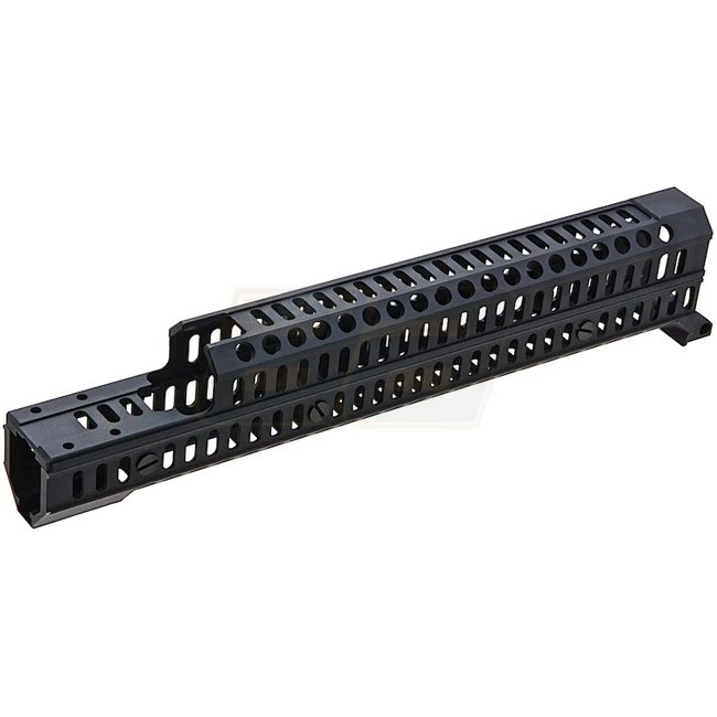 LCT AK AEG Sport-12U Rail Kit - Schwarz ist mit einem langlebigen Schienensystem ausgestattet, das ideal für taktische Anbauteile ist. Sein elegantes Design sorgt für eine stilvolle Ergänzung Ihrer Airsoft-Sammlung und bietet gleichzeitig hervorragende Le