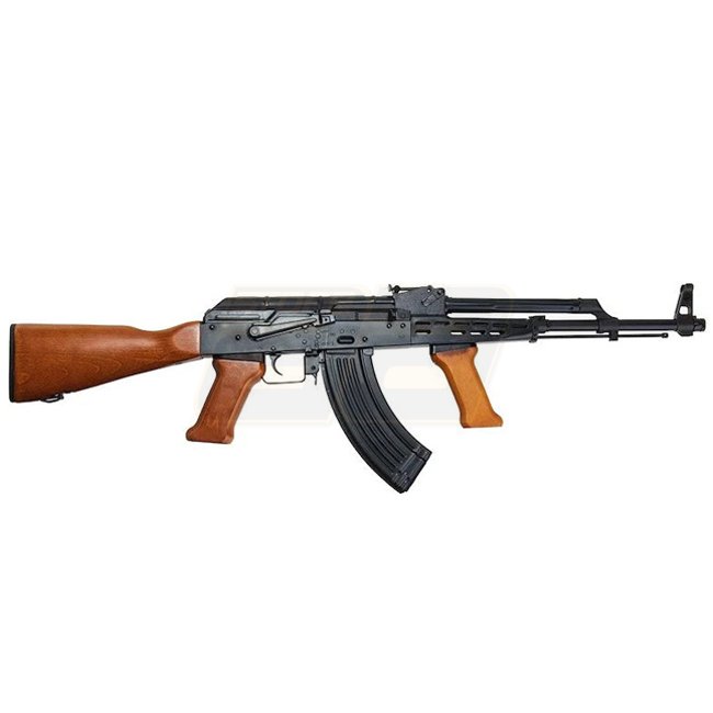 LCT AK LCKM-63 AEG Echtholz - Ein hochwertiges Airsoft-Gewehr mit Metall- und Holzbauweise, halbautomatischen und vollautomatischen Schussmodi sowie einstellbarem Hop-up. Wird mit einem 130-Schuss-Magazin geliefert und benötigt einen Akku mit kleinem Tami