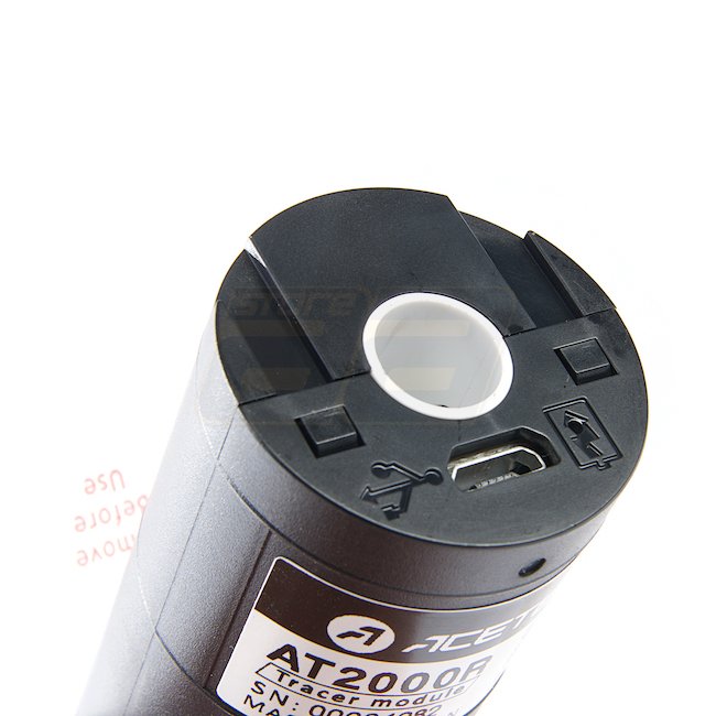 Hochwertige Metall-Silencer-Tracer-Einheit für AK-Modelle von LCT, ausgestattet mit dem eingebauten AceTech AT2000R-Modul. Wiederaufladbarer 10400 Li-Ion-Akku, USB-Micro-Ladung, 14mm-Gewinde, 186mm Länge, 45mm Durchmesser und 480g Gewicht.