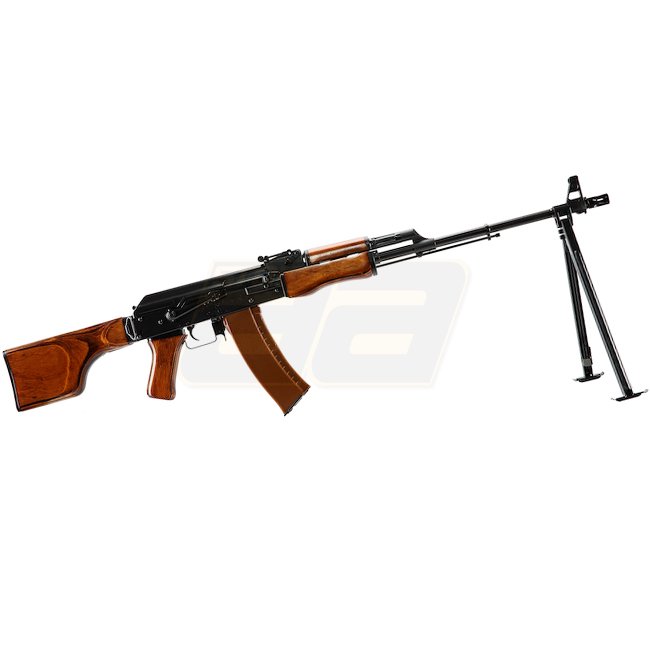 LCT RPKS74 NV AEG: Ein hochwertiges Airsoft-Gewehr mit Stahlkonstruktion, Holz-Handschutz und -schaft sowie einem Kunststoff-Pistolengriff. Verfügt über ein Magazin mit 450 Schuss Kapazität, eine Länge von 841/1066mm, ein Gewicht von 4450g und schießt mit