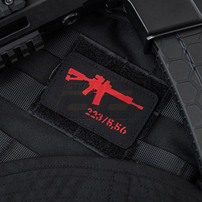 M-Tac AR-15 223/5.56 Laser Cut Patch - Rot: Strapazierfähiges Cordura 500D Nylon vorne und Hakenfläche hinten. Maße 80 x 50 mm.