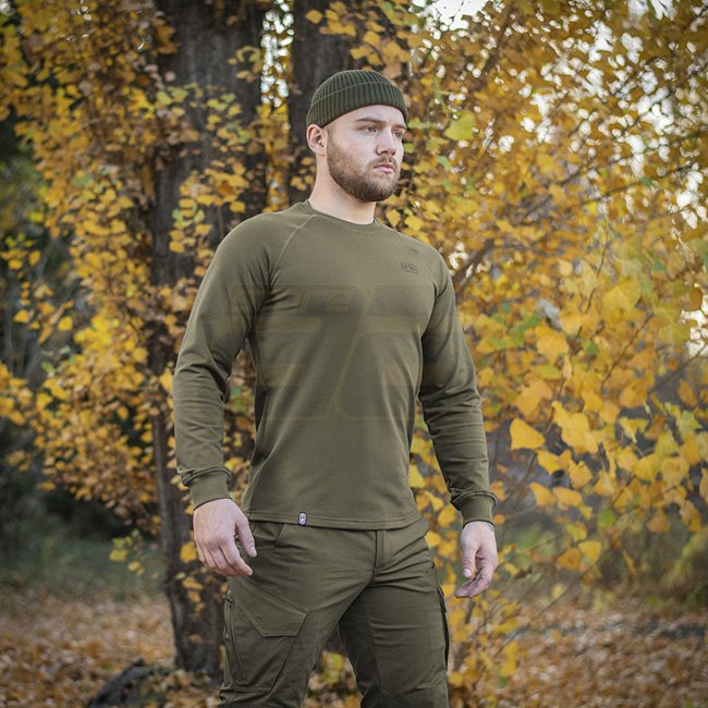 Das M-Tac Athlete Raglan in Dunkeloliv, Größe L, ist ein vielseitiges und minimalistisches Modell, perfekt für den täglichen Gebrauch in allen Jahreszeiten. Mit rundem Halsausschnitt, Raglan-Designärmel und dehnbaren Manschetten bietet dieses Kleidungsstü