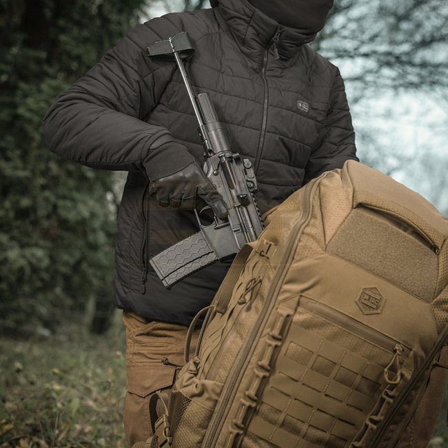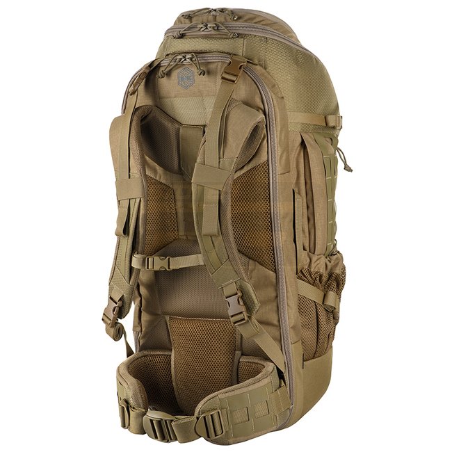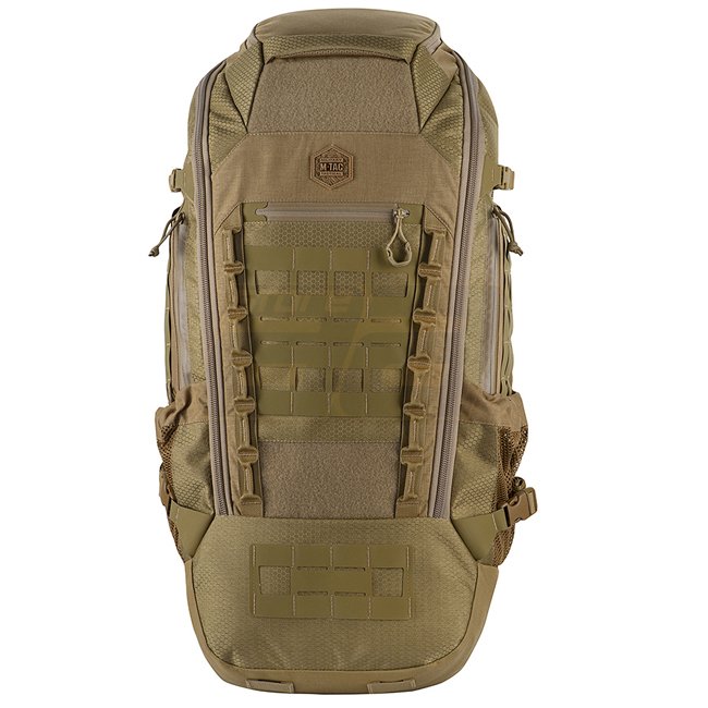 Ergonomischer M-Tac Rucksack Large Elite Hex - Coyote mit Cordura-Material und lasergeschnittenem MOLLE-System. Öffnet sich wie ein Koffer für einfache Ausrüstungsverstauung, verfügt über gepolsterte Schultergurte für Gewichtsverteilung, Seitenschnürungen