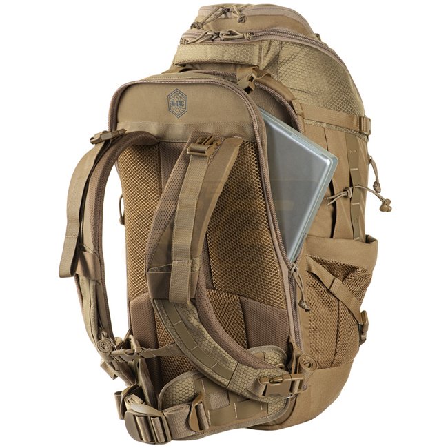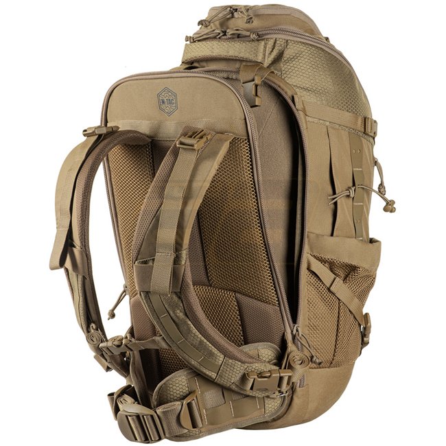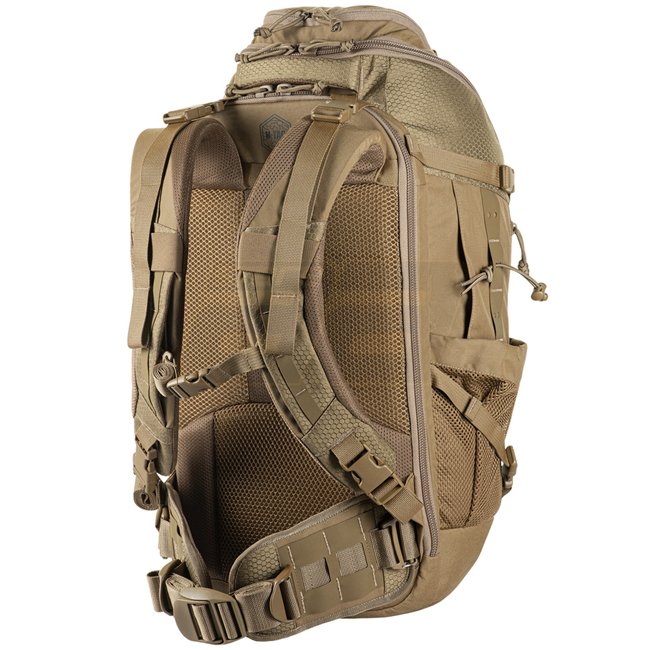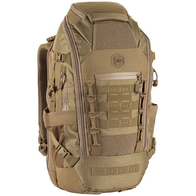 M-Tac Rucksack Klein Elite Hex - Coyote: Stilvoller, funktionaler Rucksack aus Cordura 500D & Hex 1000, ausgestattet mit einem lasergeschnittenen MOLLE-System zur Anpassung. Volumen 36L, Gewicht 1450g, Maße 57x28x18cm.