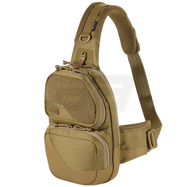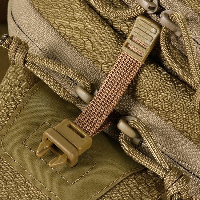 Die M-Tac Buckler Tasche Elite Hex - Coyote ist eine vielseitige Tasche mit zwei Außentaschen, einem verdeckten Waffenfach, MOLLE-Oberfläche und einem stoßdämpfenden Gürtel für Komfort. Sie verfügt über praktische Taschen, Organisatoren und ist kompatibel