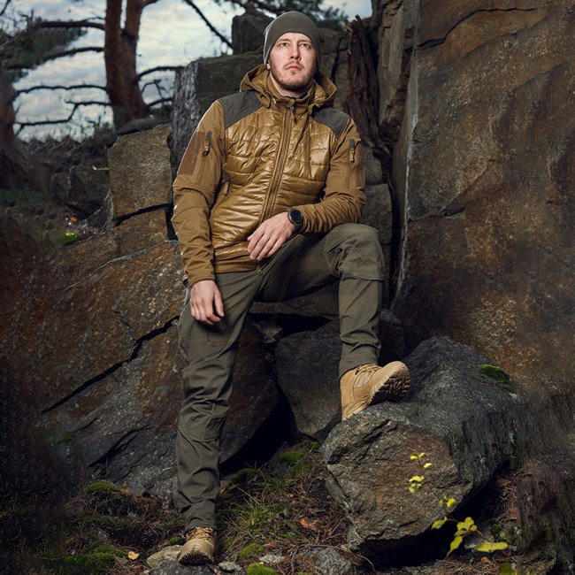 Die Designmerkmale der Conquistador Flex Hose sind ein elastischer Einsatz in der Taille und in der Nähe von Seitentaschen, dank denen die Hose Sie beim Bücken nicht einschränkt. Sie schränken die Bewegungsfreiheit nicht ein und können sowohl als taktische als auch als Alltagskleidung getragen werden. Die Hose hat einen Reißverschluss und einen Knopf, sie ist auch mit Schlaufen für einen bis zu 5.5cm breiten Gürtel ausgestattet. An der Vorderseite sind zwei D-Ringe zur Befestigung verschiedener Ausrüstungsgegenstände angenäht. Die Conquistador Flex Hose ist mit einer großen Anzahl von Taschen ausgestattet, die sowohl nützlich als auch besonders sind: Insgesamt gibt es acht Taschen. Standard Seitentaschen sind unten mit einer Verstärkung ausgestattet - zum Anbringen eines Messerclips oder einer Taschenlampe am Taschenrand. Die aufwändige Cargotasche ist mit einer zusätzlichen aufgesetzten Tasche ausgestattet, die ein M4- oder AK-Magazin aufnehmen kann. Die Cargotasche selbst ist recht geräumig. Sie hat zwei Falten, wodurch sie für den Transport von sperrigen Gegenständen vergrößert werden kann. Die Cargotasche wird durch eine asymmetrische Klettverschlussklappe mit Schnellverschluss verschlossen. Außerdem ist die Cargotasche mit einem zweiten Eingang mit Reißverschluss ausgestattet, sodass Sie auch im Sitzen auf den Inhalt zugreifen können.