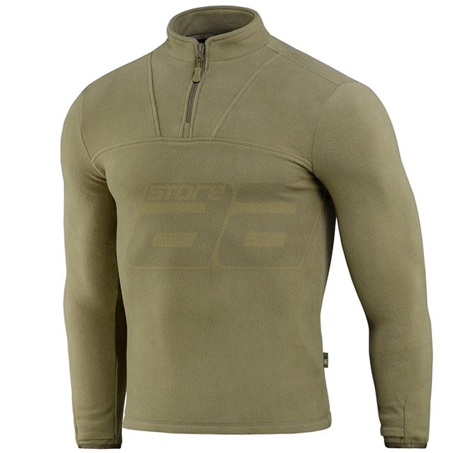 M-Tac Delta Fleece-Jacke in Tan, Größe XS. Daumenlöcher in den Ärmeln halten die Handflächen warm, während die Finger frei bleiben. Bequeme, figurbetonte Passform, die die Form beibehält und schnell trocknet. Ideal für kaltes Wetter als zweite Schicht ode