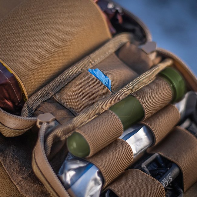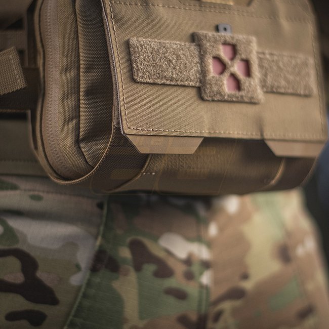 Die M-Tac Horizontal Medizinische Tasche Groß Elite in Coyote-Farbe ist ein vielseitiges Erste-Hilfe-Set, das für schnellen Zugriff und Organisation ausgelegt ist. Merkmale eines Cordura 500D Organizers mit einem wasserdichten YKK AquaGuard Reißverschluss