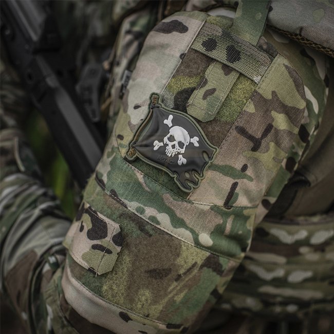 M-Tac Jolly Roger Gummipatch - Olive. PVC-Vorderseite mit Klettrücken, 64 x 64 mm.