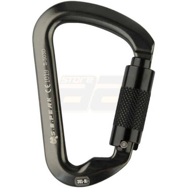 M-Tac Key-Lock Karabiner - Schwarz: Leichter Aluminiumkarabiner, wiegt 85g, mit den Abmessungen 110 x 74 mm.