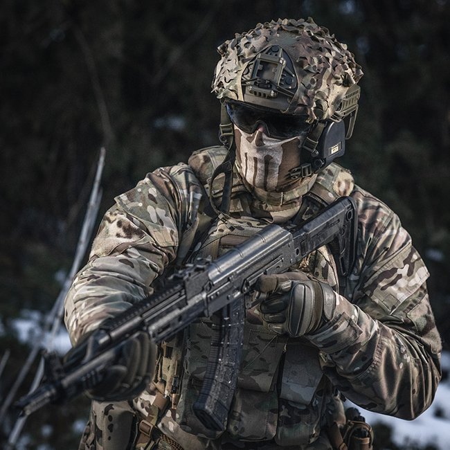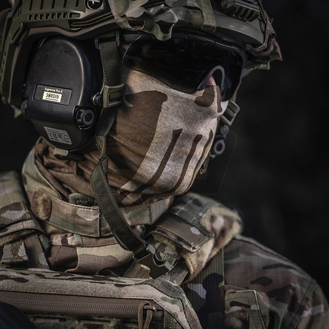 M-Tac Leichter Schlauchschal Reaper Punisher - Coyote - Multifunktionales Bandana aus dünnem Strickstoff (100% Polyester), das auf verschiedene Weisen getragen werden kann, von der Unterhelmkappe bis zum Stirnband. Dehnbar, schnell trocknend und kompakt z