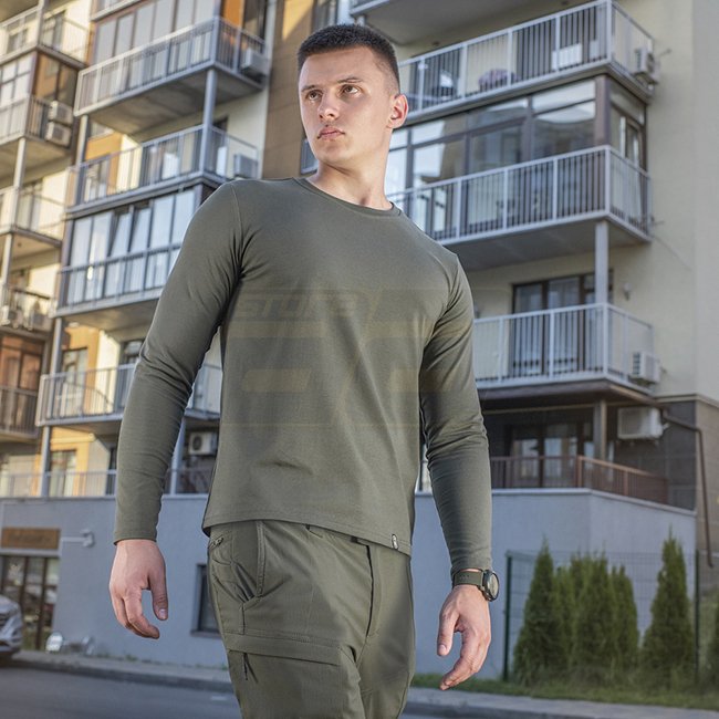 M-Tac Langarmshirt 93/7 - Army Olive - M: Hergestellt aus 93% Baumwolle und 7% Elasthan, behält dieses langlebige Shirt auch nach mehrmaligem Waschen seine Form. Ein vielseitiges Muss für jede Garderobe, ideal für den täglichen Gebrauch, Militär, Sicherhe