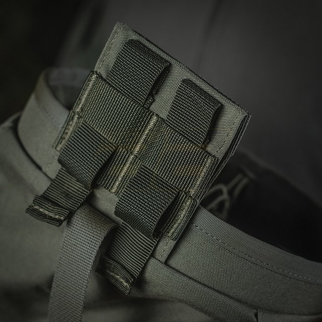 Die Tasche ist für den blinden Austausch von Magazinen in Situationen hoher Belastung vorgesehen. Das spezielle Design verhindert, dass Magazine und andere Ausrüstung aus der Tasche fallen. Der Hals der Tasche ist mit einem Schnellverschlusssystem ausgestattet, mit dem Sie die Tasche bei Bedarf schnell und fest verschließen können.