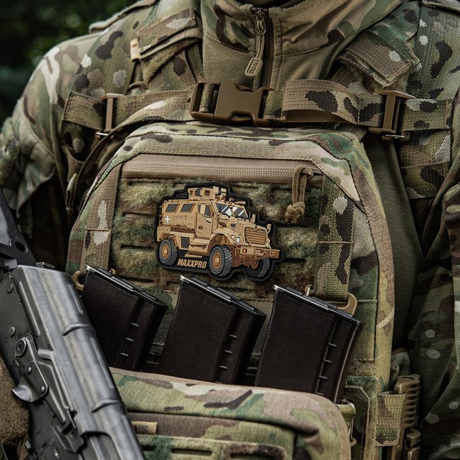 M-Tac MaxxPro Rubber Patch - Coyote, Vorderseite aus PVC, Rückseite mit Hakenfläche, Abmessungen 72 x 106 mm