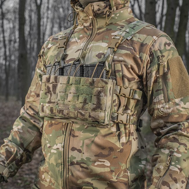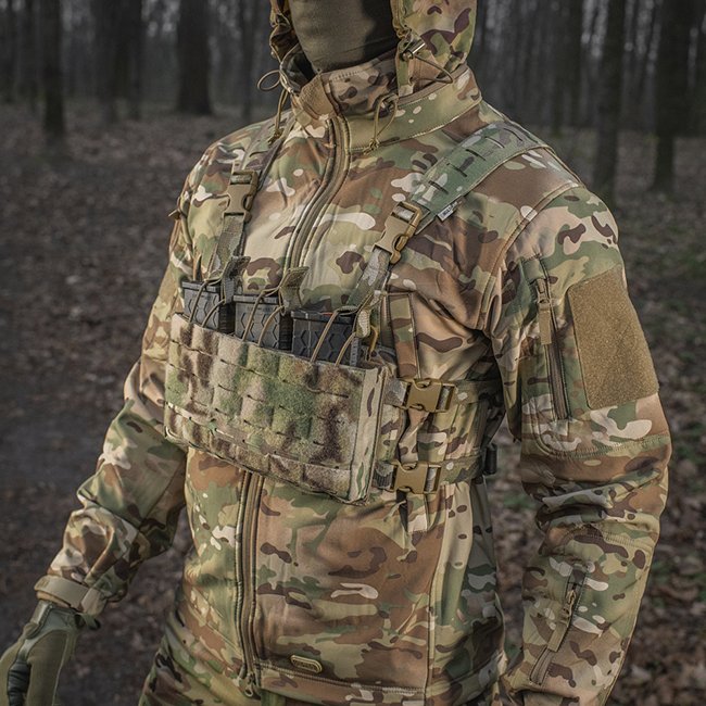 Das M-Tac Modular Chest Rig in Multicam ist ein vielseitiges und bequemes taktisches Brustgeschirr, hergestellt aus hochwertigem und robustem Cordura 500D Material. Es ist dafür ausgelegt, drei Magazine sicher mit Woojin-Haken und Klettverschluss zu halte