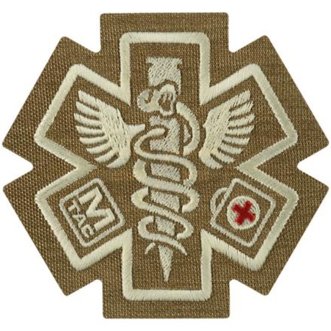 M-Tac Paramedic Stickerei-Patch - Coyote, hergestellt aus Cordura 500D auf der Vorderseite und mit einer Hakenfläche auf der Rückseite. Größe 75 x 80 mm.