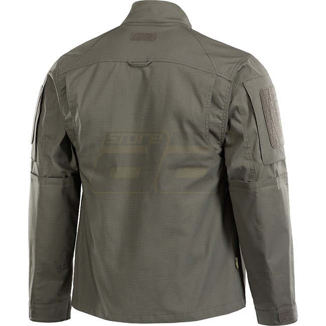 Im oberen Teil des Rückens befindet sich eine verstärkte Passe mit Klettverschluss für einen IR-Marker unter dem Kragen, Dehnfalten um die Arme sorgen für Bewegungsfreiheit, auch wenn ein Schutzweste getragen wird. Die Ärmel sind mit einer Ellbogentasche für eine weiche Einlage ausgestattet. Die Ärmelbündchen sind durch Klettverschlüsse in der Weite verstellbar.