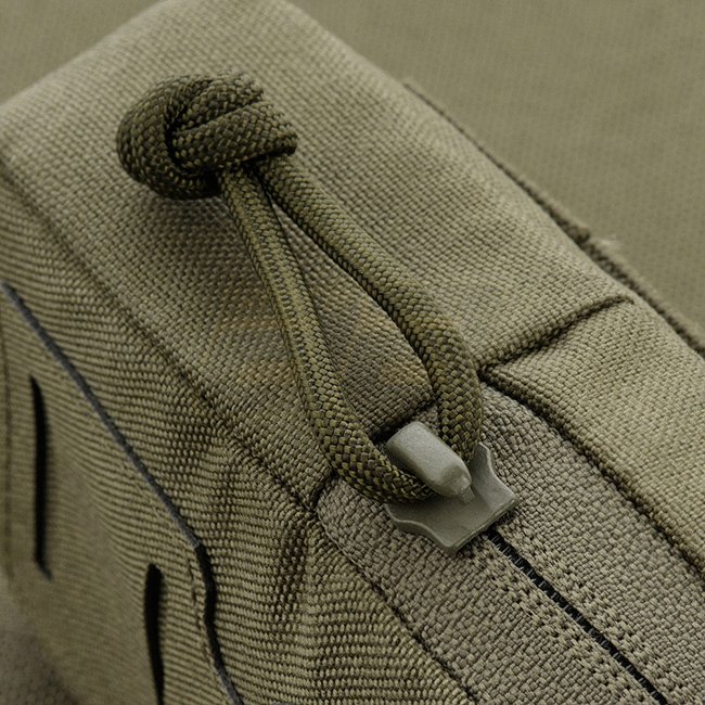 Die M-Tac PC Utility Pouch Elite in Ranger Green Farbe, ausgestattet mit einer MOLLE-Schnittstelle, einem Fach für kleine Gegenstände, Abflussloch und Klettfläche für Patches und Kennzeichnungen. Hergestellt aus Cordura 500D. Abmessungen: 13 x 6 x 3 cm.