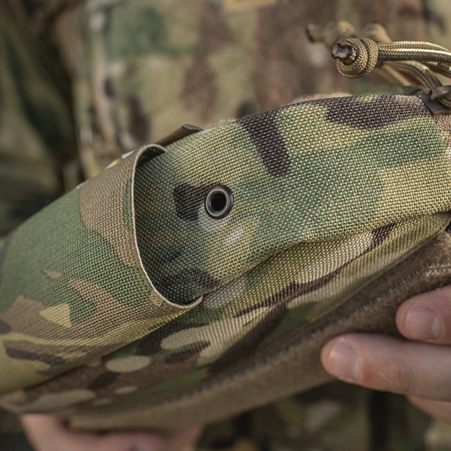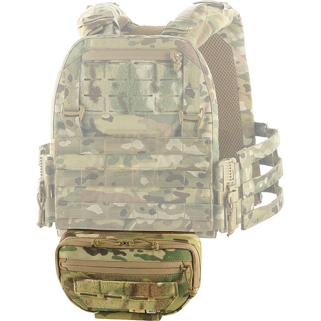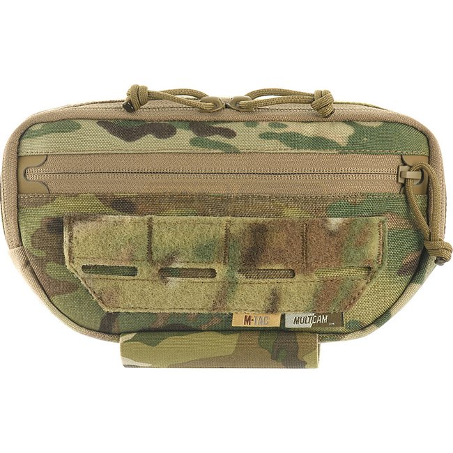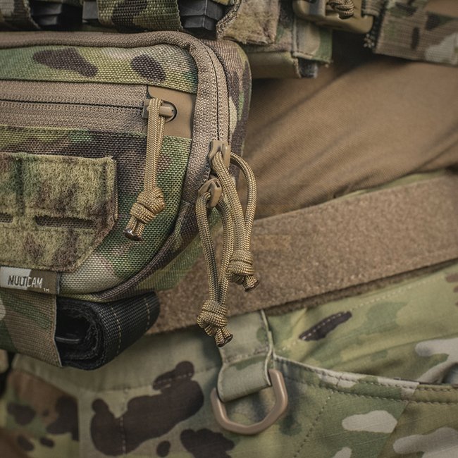 M-Tac Plate Carrier Lower Accessory Pouch Gen.II Elite - Multicam ist eine strapazierfähige Zubehörtasche, die an das vordere Klettverschlusspanel eines Plattenträgers angebracht wird. Sie verfügt über eine untere elastische Schlaufe zur Aufbewahrung eine