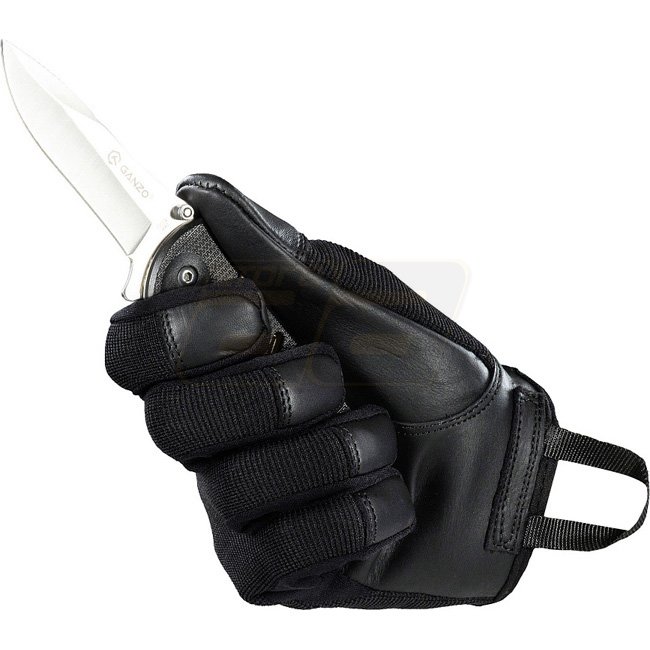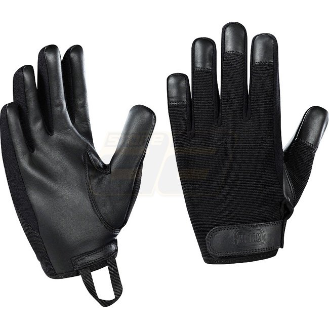 M-Tac Polizeihandschuhe - Schwarz - M: Entwickelt für die Polizeikräfte, hergestellt aus Synthetik/Leder mit gepolsterten Aktivzonen und verstellbaren Klettverschlussmanschetten für Komfort. Material: Polyester/Lederhandfläche.