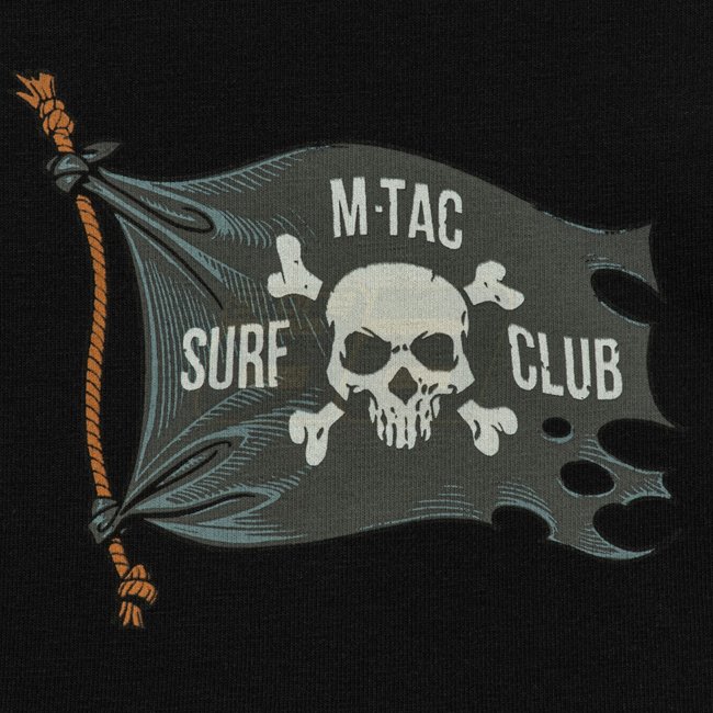 M-Tac Surf Club T-Shirt in Schwarz XS, hergestellt aus 93% Baumwolle und 7% Elasthan, wiegt 190g.