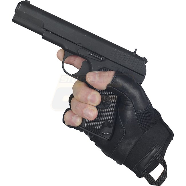 Die Tactical Assault Gloves Fingerless Mk.4 sind für den Umgang mit Waffen konzipiert. Dieses Modell verfügt über ein verstärktes Innenhandpolster aus echtem Leder, das Verletzungen und Prellungen bei Stürzen vorbeugt und selbst bei Nässe ein Abrutschen verhindert. Die Handschuhe verfügen über Dämpfungspolster über den Knöcheln. Die Manschette schließt mit Klettverschluss.
